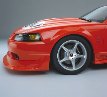 CONCORD, N.C., April 17, 1999 -- A prototype version of the 2000 Ford SVT Mustang Cobra R was revealed today at Charlotte Motor Speedway, during the Mustang Club of Americas 35th Anniversary celebration for the Ford Mustang. Tom Scarpello, Specialty Vehicle marketing manager, took the wraps off a "Grabber Orange" Cobra R at the show, which is expected to draw more than 30,000 Mustang fanatics this weekend. "I cant think of a better place to provide a sneak preview of the new SVT Mustang Cobra R -- at a world class racing facility in front of thousands of enthusiastic Mustang lovers," said Scarpello. "The 2000 Cobra R will be the fastest production Mustang in its 35-year history." Built with the race track in mind, the Cobra R will feature a modular V-8 engine, solidifying this family of engines as the high-performance benchmark in Fords lineup. The new Cobra R features exterior enhancements that will boost performance on the race track, including a front air-splitter and tall rear deck spoiler, which will create downforce for increased stability at track speeds. Other differences unique to the Cobra R include the "power dome" hood with a rear air extractor for improved engine cooling, 18-inch wheels shod with BFGoodrich g-Force KD tires, and a lowered suspension for enhanced handling. Cobra Rs interior changes include the addition of Recaro sport seats, and the removal of the radio, air-conditioner and back seat to save weight. A number of other well-respected performance parts suppliers are working with SVT in the development of the Cobra R, including Brembo for brake rotors and calipers, Tremec for the transmission, Eibach and Bilstein for suspension, and Borla for the exhaust. There will be a limited production of only 300 Cobra R models built on the same line of the Dearborn Assembly Plant which produces the V6, GT, and Cobra Mustangs. The 2000 model will be the third generation of the Cobra R, following the successful and still sought-after 1993 and 1995 Cobra R models. The debut Cobra R, the 1993 model, was introduced as a competition package, and included unique wheels, suspension and cooling upgrades, chassis bracing and a higher-output version of the 5.0L HO V-8 engine found in the 93 Cobra. Just 107 93 Cobra Rs were produced. The 1995 Cobra R (250 produced) was also a competition package, and featured a higher-output version of the 5.8 Windsor V-8 engine, an upgraded cooling system, the Tremec 5-speed transmission, unique suspension tuning and 17 x 9-inch wheels. Expected production date is January, 2000. |