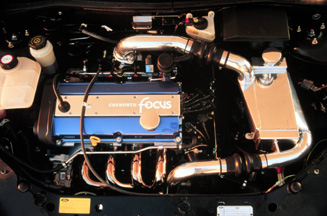 The Ford Cosworth Focus is powered by a Cosworth-developed 2.0-litre turbo-charged and inter-cooled Zetec-E engine which produces more than 200 PS. A standard 5-speed MTX-75 transmission makes for smooth gear-changing and acceleration - but it benefits from the addition of a viscous-coupled, limited-slip differential.