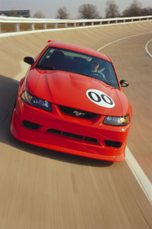 CONCORD, N.C., April 17, 1999 -- A prototype version of the 2000 Ford SVT Mustang Cobra R was revealed today at Charlotte Motor Speedway, during the Mustang Club of Americas 35th Anniversary celebration for the Ford Mustang. Tom Scarpello, Specialty Vehicle marketing manager, took the wraps off a "Grabber Orange" Cobra R at the show, which is expected to draw more than 30,000 Mustang fanatics this weekend. "I cant think of a better place to provide a sneak preview of the new SVT Mustang Cobra R -- at a world class racing facility in front of thousands of enthusiastic Mustang lovers," said Scarpello. "The 2000 Cobra R will be the fastest production Mustang in its 35-year history." Built with the race track in mind, the Cobra R will feature a modular V-8 engine, solidifying this family of engines as the high-performance benchmark in Fords lineup. The new Cobra R features exterior enhancements that will boost performance on the race track, including a front air-splitter and tall rear deck spoiler, which will create downforce for increased stability at track speeds. Other differences unique to the Cobra R include the "power dome" hood with a rear air extractor for improved engine cooling, 18-inch wheels shod with BFGoodrich g-Force KD tires, and a lowered suspension for enhanced handling. Cobra Rs interior changes include the addition of Recaro sport seats, and the removal of the radio, air-conditioner and back seat to save weight. A number of other well-respected performance parts suppliers are working with SVT in the development of the Cobra R, including Brembo for brake rotors and calipers, Tremec for the transmission, Eibach and Bilstein for suspension, and Borla for the exhaust. There will be a limited production of only 300 Cobra R models built on the same line of the Dearborn Assembly Plant which produces the V6, GT, and Cobra Mustangs. The 2000 model will be the third generation of the Cobra R, following the successful and still sought-after 1993 and 1995 Cobra R models. The debut Cobra R, the 1993 model, was introduced as a competition package, and included unique wheels, suspension and cooling upgrades, chassis bracing and a higher-output version of the 5.0L HO V-8 engine found in the 93 Cobra. Just 107 93 Cobra Rs were produced. The 1995 Cobra R (250 produced) was also a competition package, and featured a higher-output version of the 5.8 Windsor V-8 engine, an upgraded cooling system, the Tremec 5-speed transmission, unique suspension tuning and 17 x 9-inch wheels. Expected production date is January, 2000. |